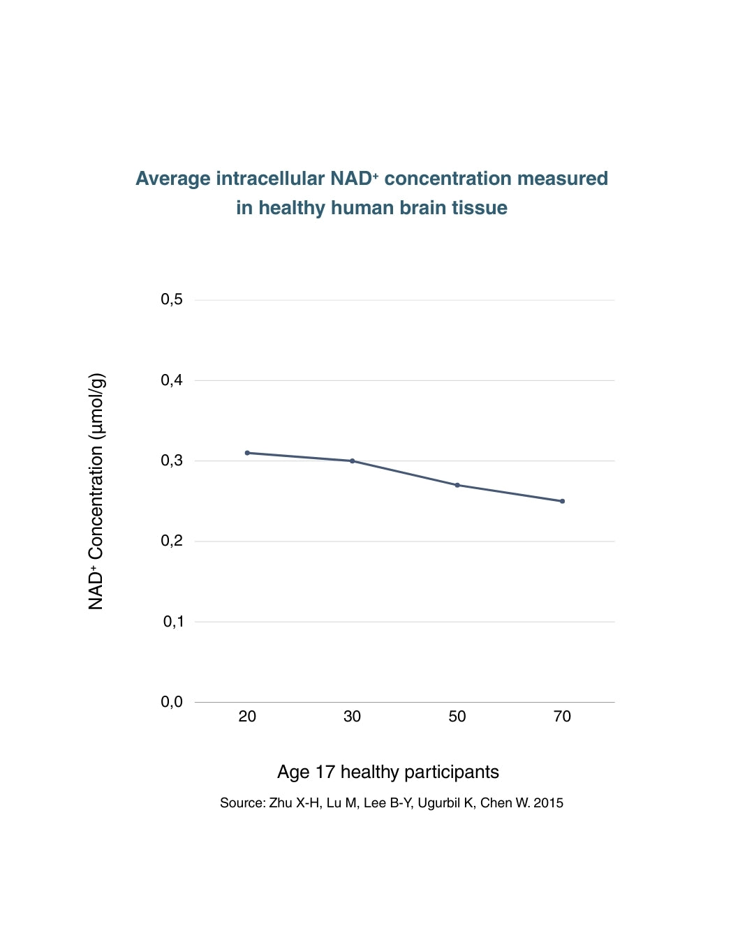NAD⁺ is a molecule essential for cellular energy production, DNA repair, and metabolic health. Research shows that NAD⁺ levels gradually decline as we age. (See the graph beside)